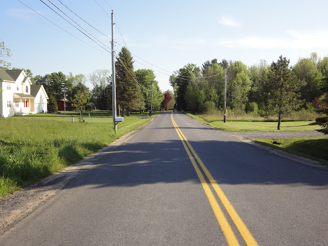 真っ直ぐな田舎道。 今時めずらしい電柱柱があります。(笑)